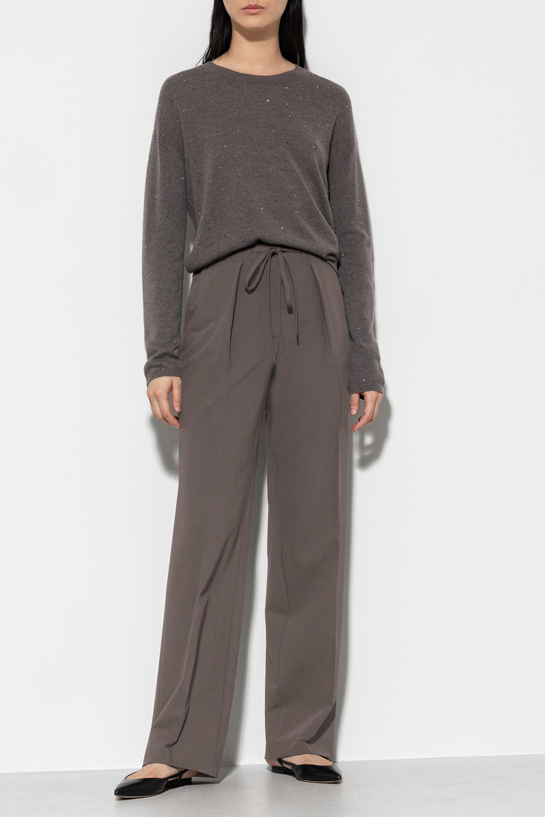 Joggpants aus moderner Techno-Wolle mit Stretch-Anteil. Bundfalten und ein integrierter Bindegürtel setzen sportive Akzente.