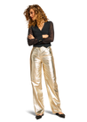 Glow & glamour! Trendstark zeigt sich die Wide- Fit-Hose nicht nur durch den angesagten Schnitt, sondern auch durch den metallischen Schimmer des Stoffes. Wir haben noch eins draufgesetzt und als Materialbasis edles Lammnappa-Leder gewählt. Ein Highlight für alle, die ihren Stil mit einem extravaganten und dennoch bequemen Kleidungsstück unterstreichen wollen.