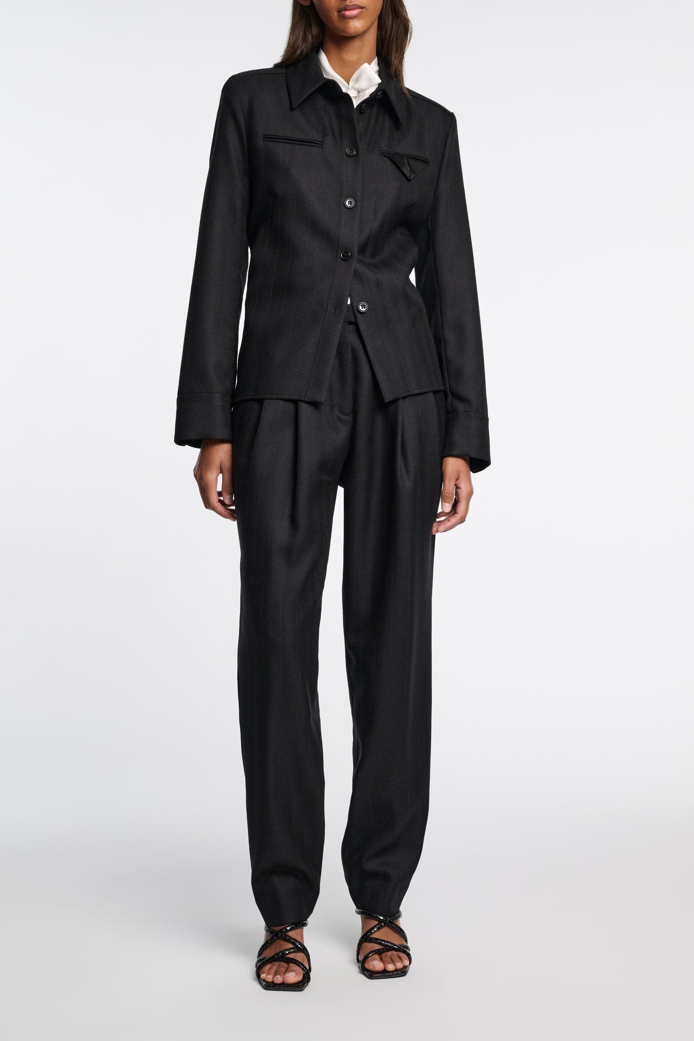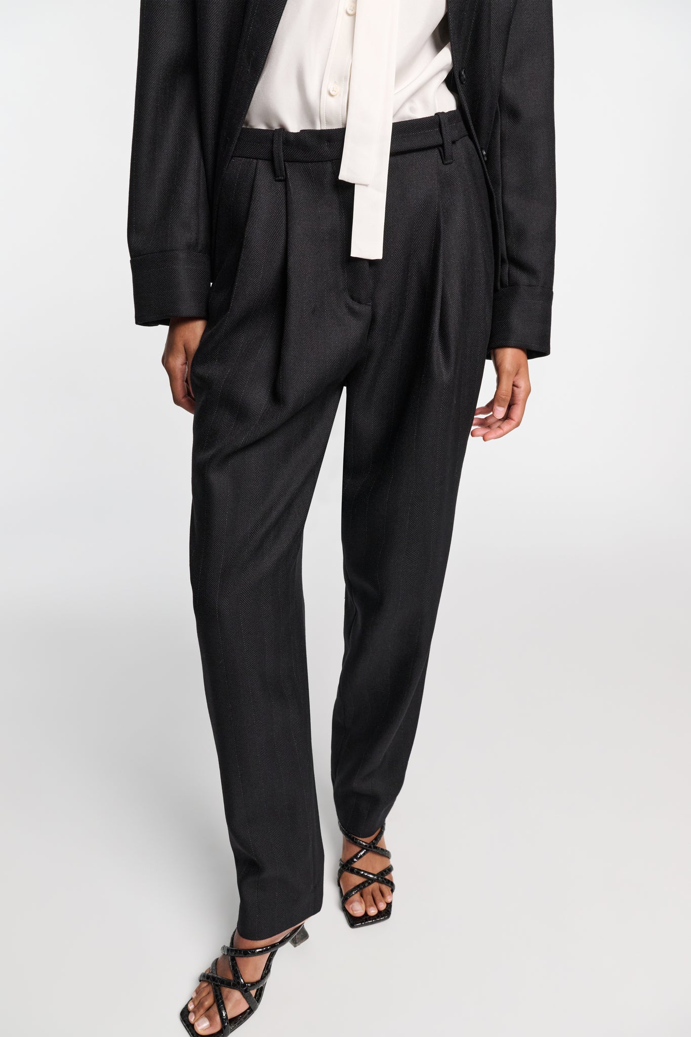 We love (pin)stripes. You will too: Die Hose ist aus Schurwolle gefertigt. Klassische Nadelstreifen treffen auf einen entspannten Fit. Die Hose hat einen vertieften Schritt und schräge Eingriffstaschen.