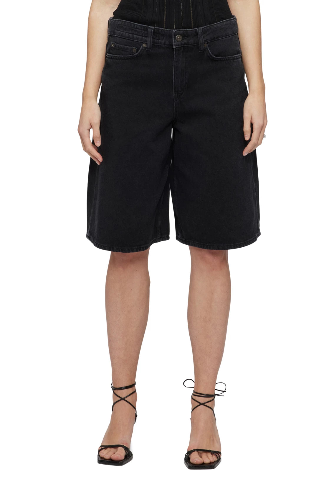 NONE is a 5-pocket Bermuda jeans. The casual fit is worn mid-waist. The dimensionally stable black denim is made of 100% cotton and has a light, authentic wash. The soft handfeel ensures a high level of comfort.