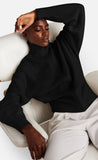 Die modische Passform der Strickjacke zeichnet sich durch den voluminösen Oberkörper und den eng anliegenden Saum aus.