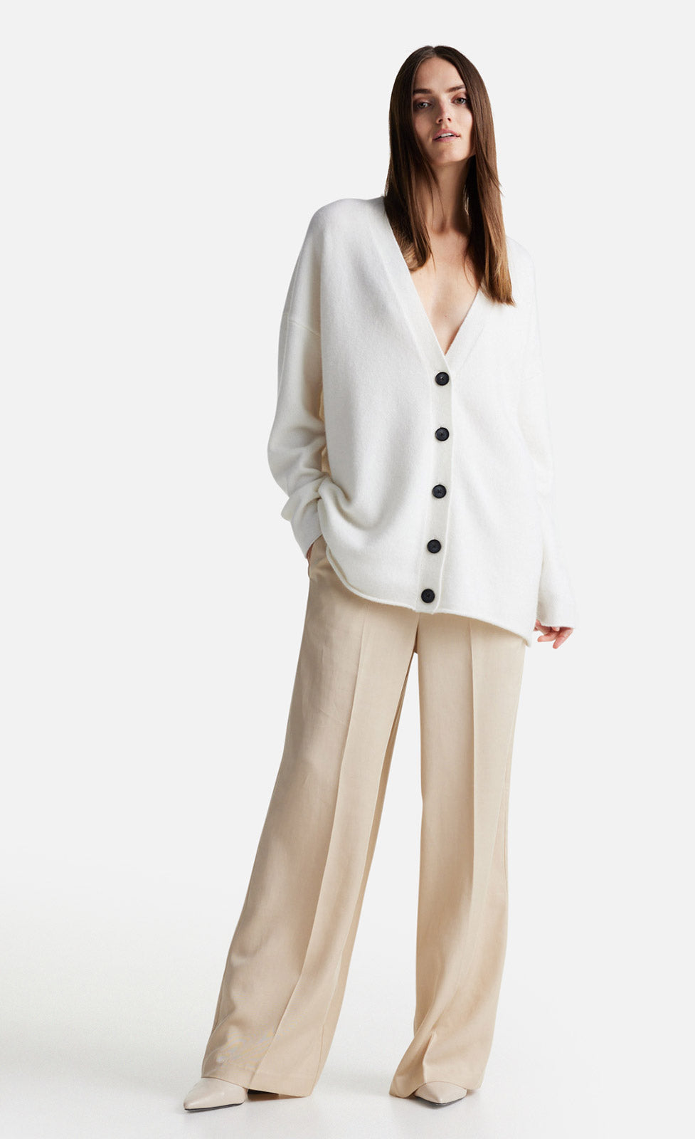 Dieser lang geschnittene Cardigan ist ein Essential für die Übergangszeit. Das zeitlose Design aus weicher, merzerisierter Wolle mit Kaschmir hat einen weichen Griff und sorgt für einen geradlinigen Look.