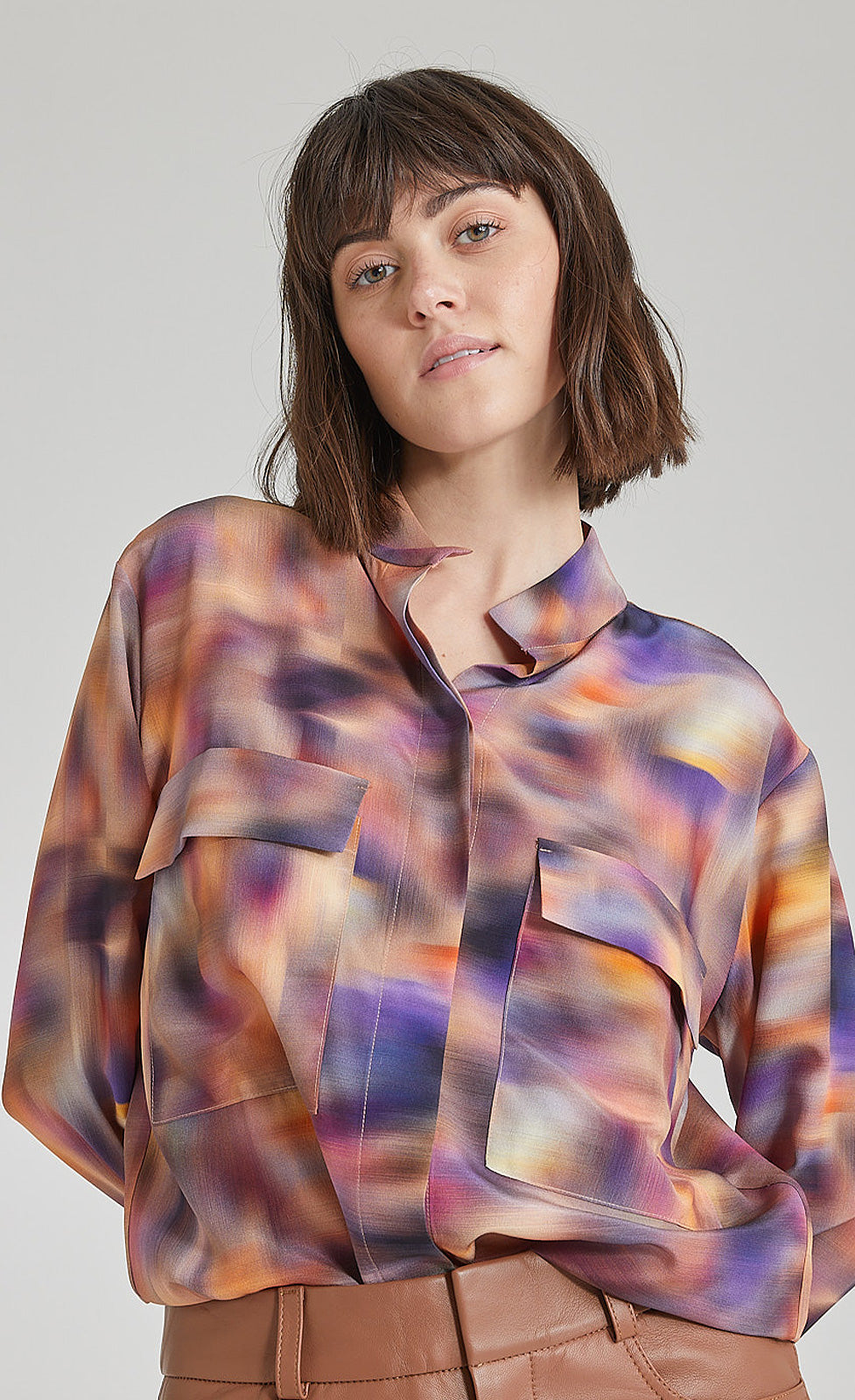 Klassische Eleganz mit aufregendem Alloverprint und Pattentaschen. Diese relaxed geschnittene Bluse ist aus hochwertiger, reiner Seide und kann sowohl sportlich als auch schick kombiniert werden.