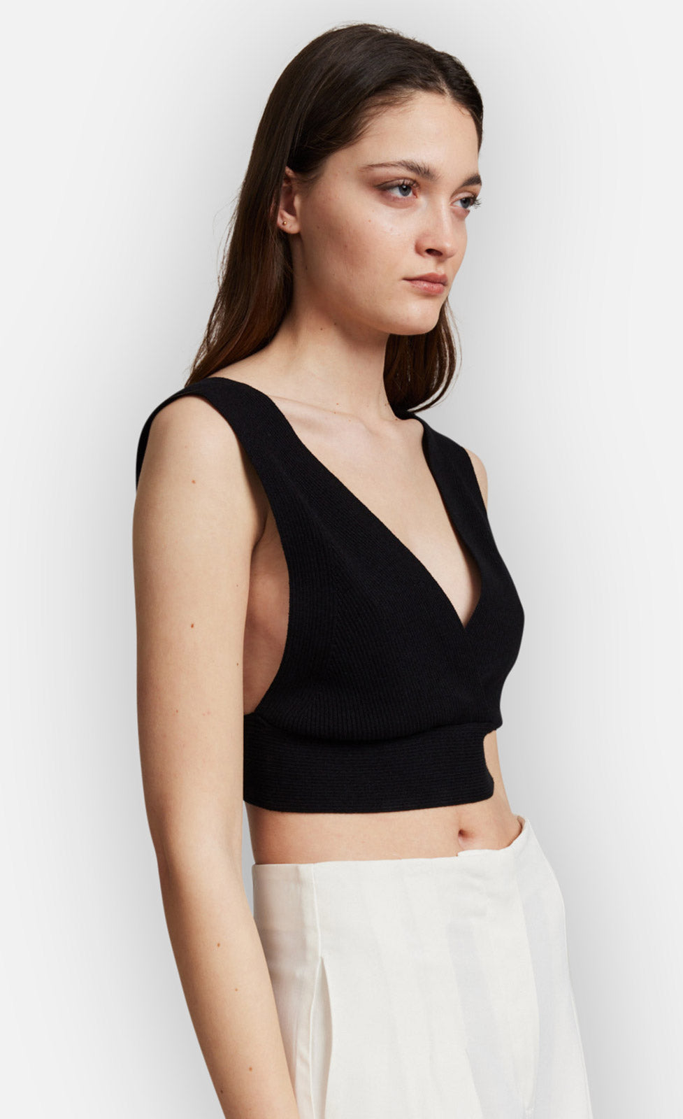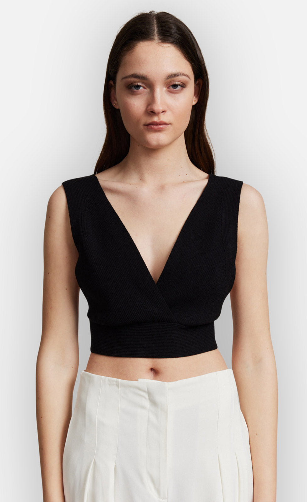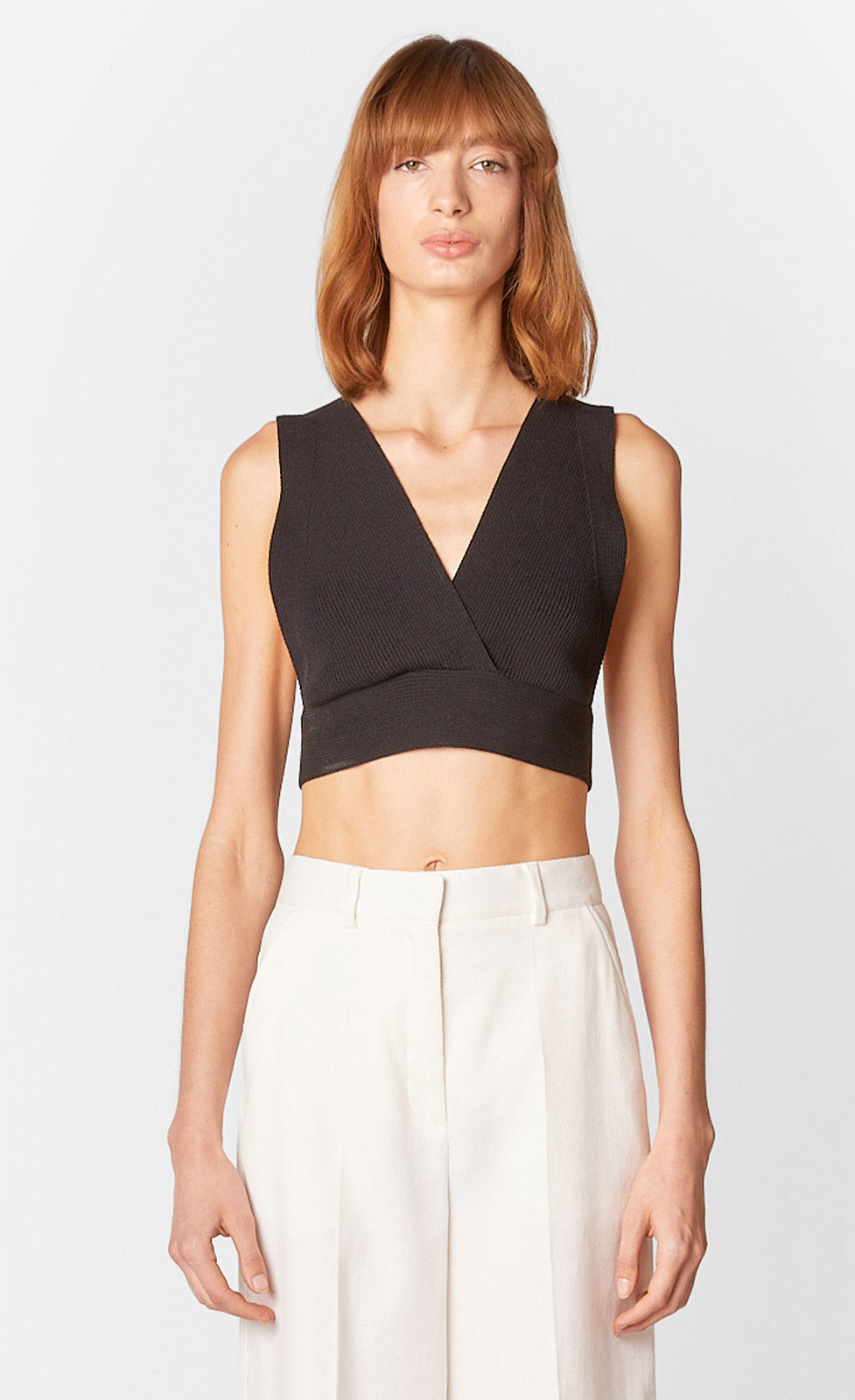 Dieses feingerippte Top wurde aus einem formstabilen Baumwollgarn hergestellt und in Wickeloptik designt.