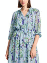 Mit seinem floralen Allover-Print in 3D-Struktur präsentiert sich dieses Kleid romantisch-verspielt. Der Rüschenkragen mit Bändchen am geschlitzten Rundhalsausschnitt unterstreicht den Stil. Akzentuiert wird die lässig weite Silhouette durch einen Gummizug in der Taille. Elastische Ärmelbündchen ergänzen das Design. Das Kleid kommt im elegant fließenden Fall.