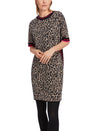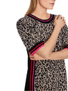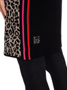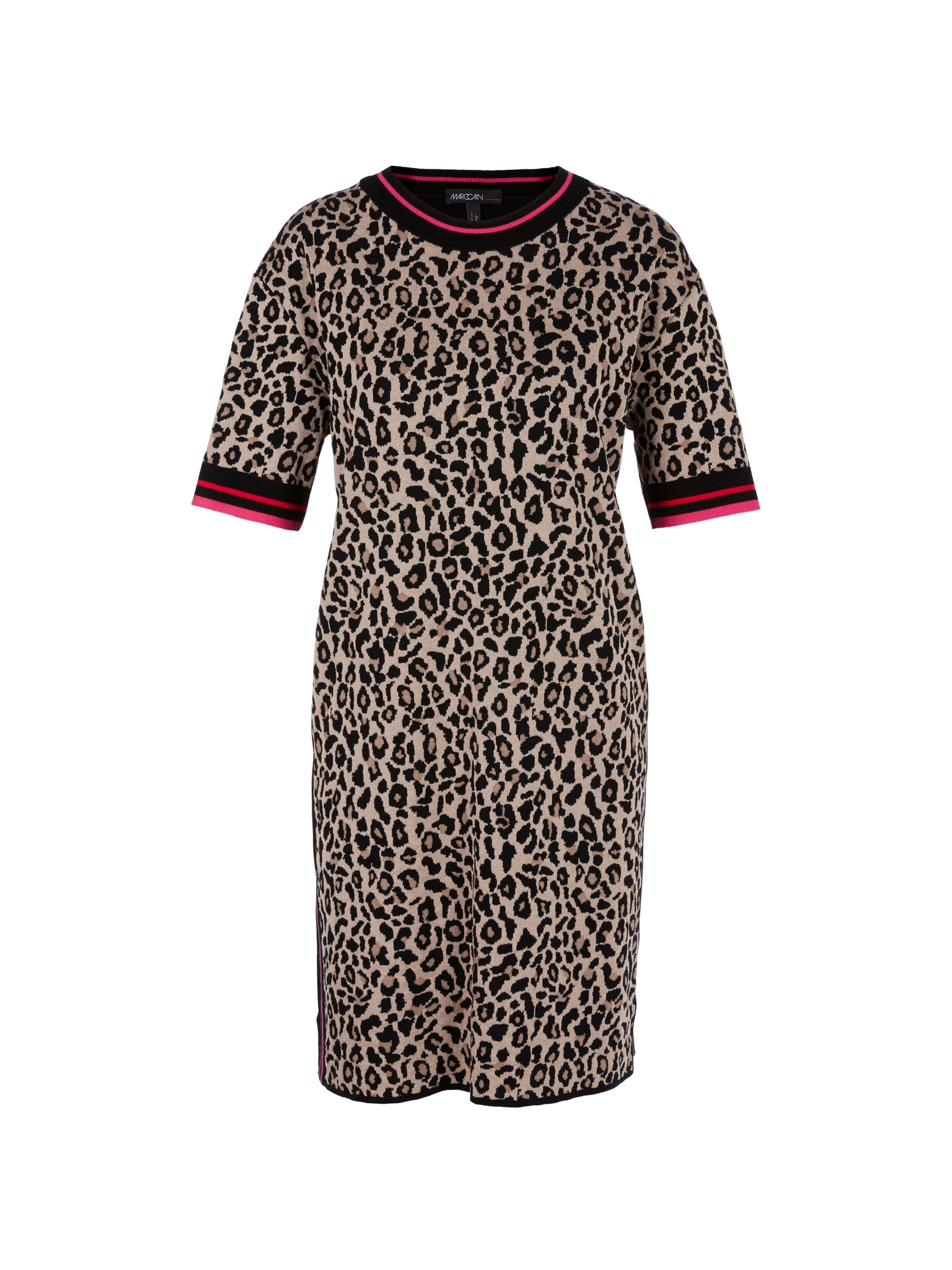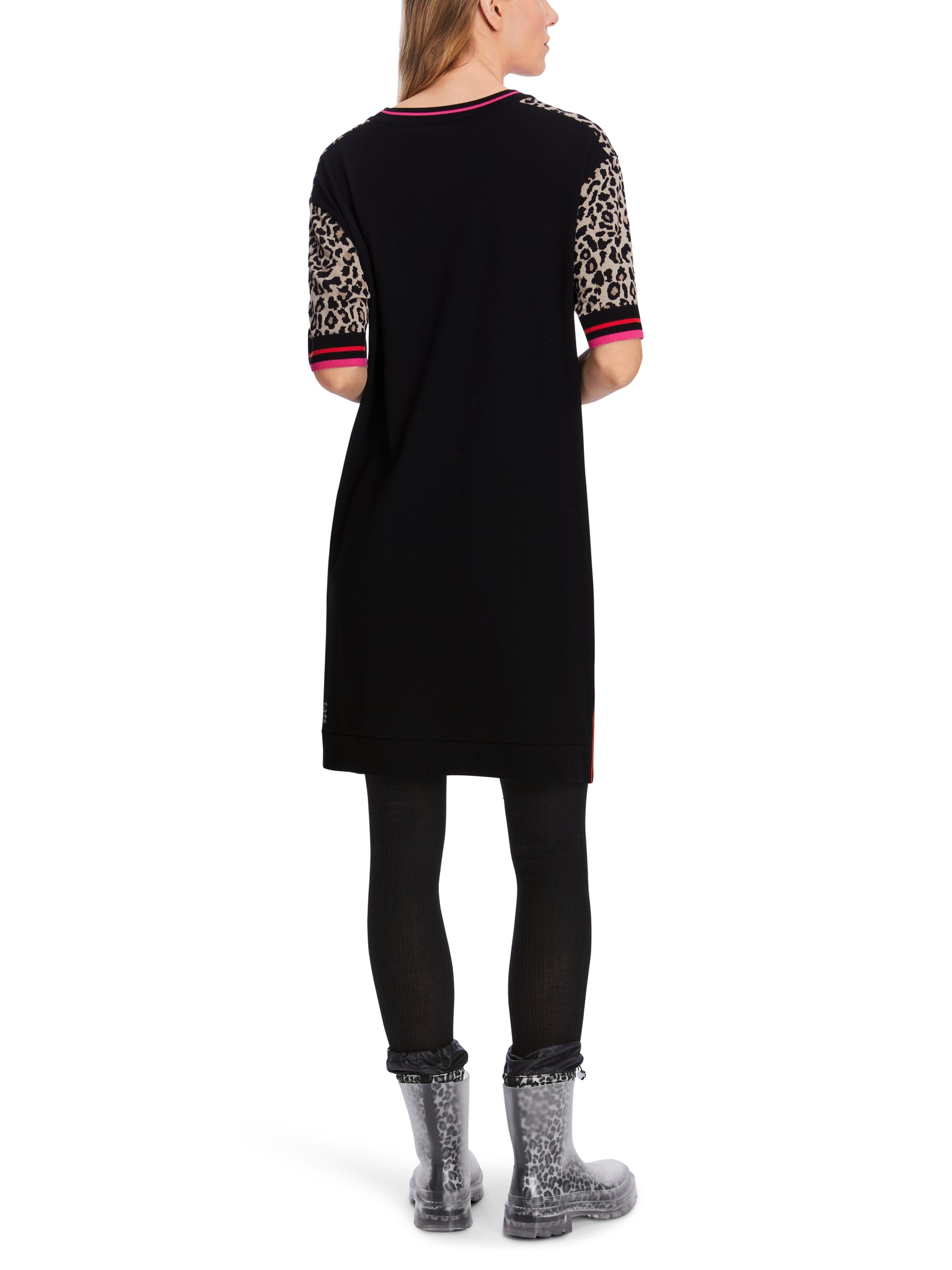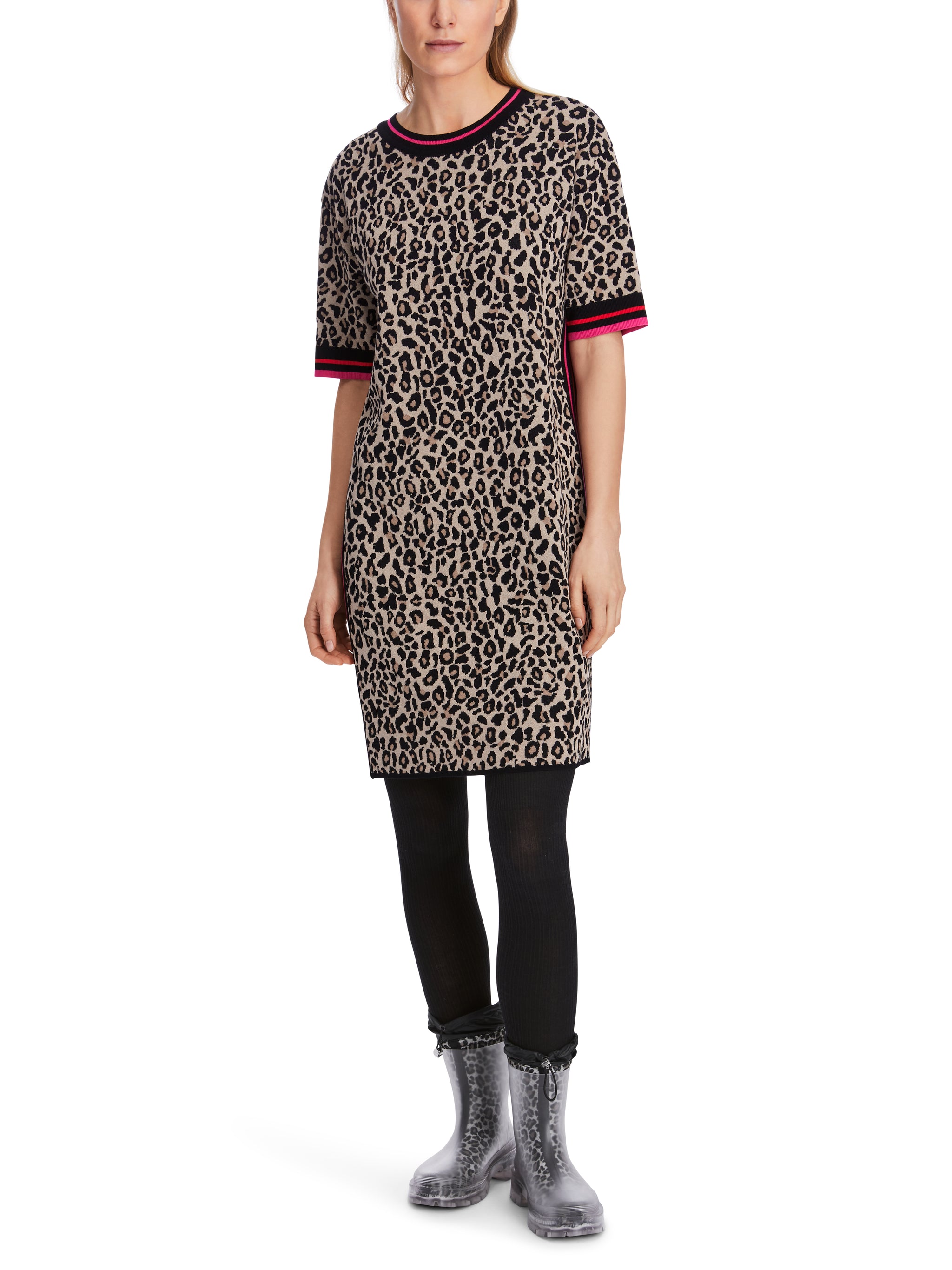 Gestricktes Minikleid mit gerader Form. Das Material ist viskosebasiert und verleiht eine weichfließende Silhouette. Das Vorderteil ist dessiniert, das Rückenteil einfarbig. Lebhafter Kontrast: die farbenfrohen Streifenbordüren. Das Modell ist Knitted in Germany: Es wird mit modernsten Technologien in Deutschland gestrickt und veredelt. Die einzelnen Teile - wie Rücken- und Vorderteil etc. - werden in europäischen Partnerbetrieben zusammengenäht.