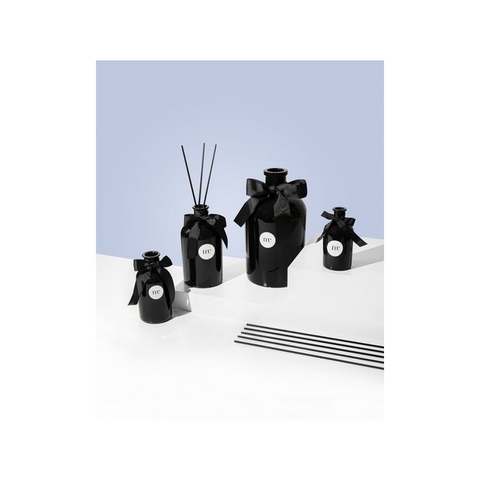 Unsere charakteristischen Düfte sind in zylindrischen schwarzen Glasflaschen verpackt. Jeder Duft wird mit absorbierenden Faserblättern für einen kontinuierlichen Duft transportiert.