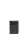 Product: '4X' Cardholder Black- Space for 4 credit cards and pocket for cash or small documents - Slim and compact design, ideal for every pocket - Silver colored press stud closure - Soft and durable 100% cotton lining - Protective dust bag included for lasting beauty - Made in Italy - Premium bovine leather woven with 100% cotton yarn on 18th century treadle looms