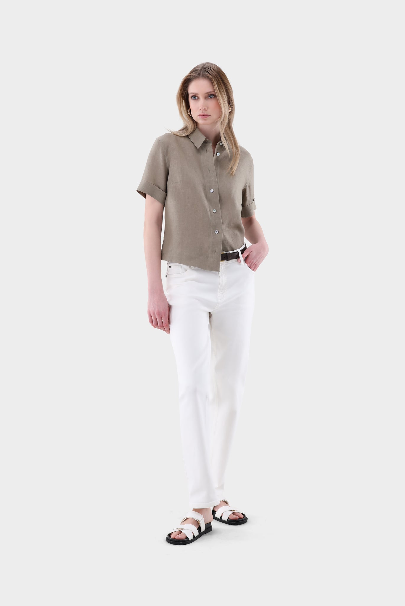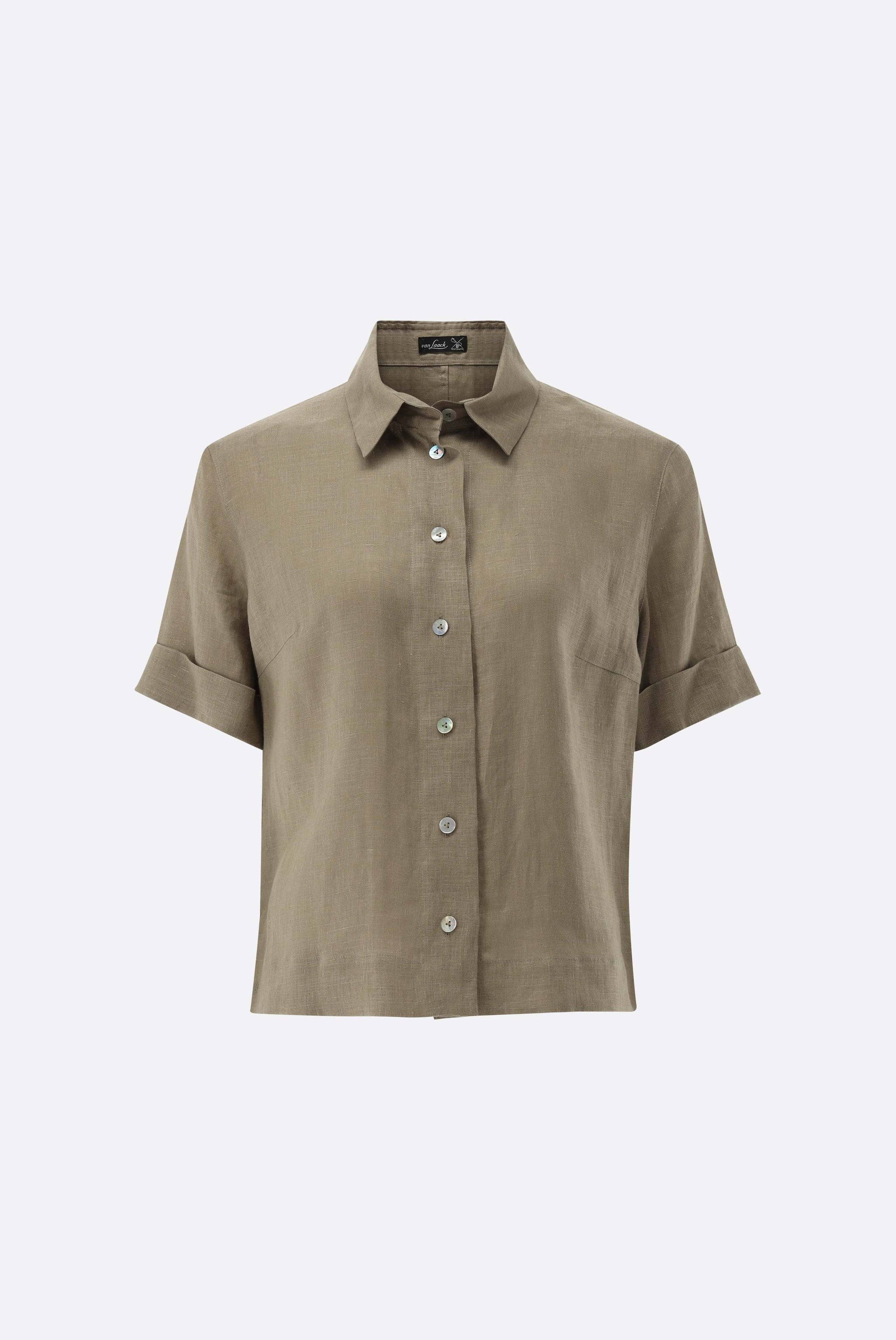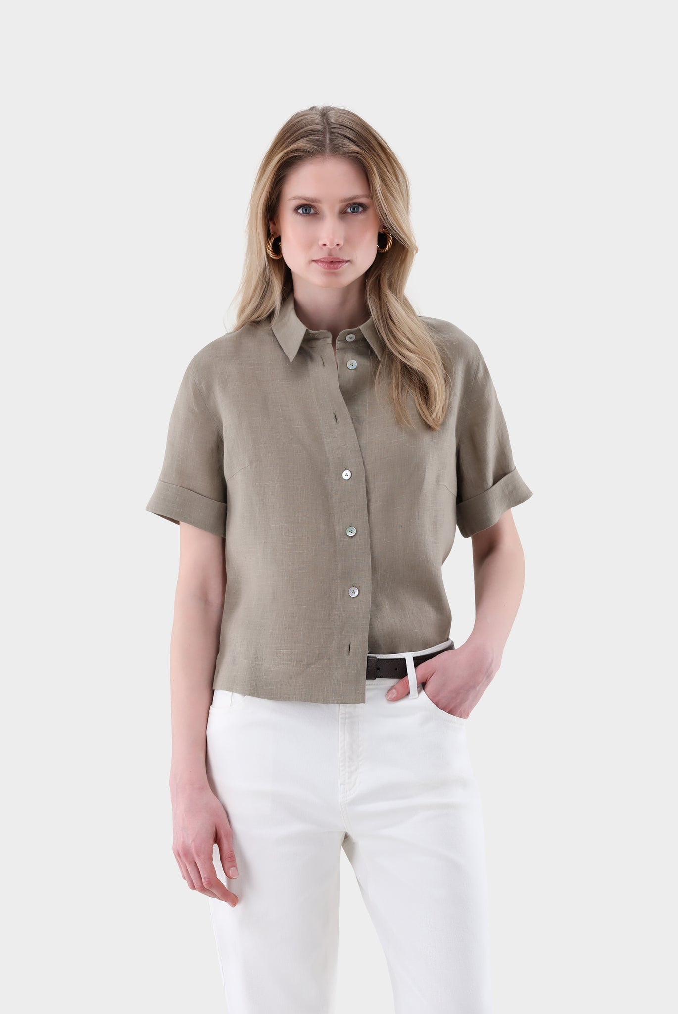 Kurzarm Hemdbluse aus Leinen Boxy Fit