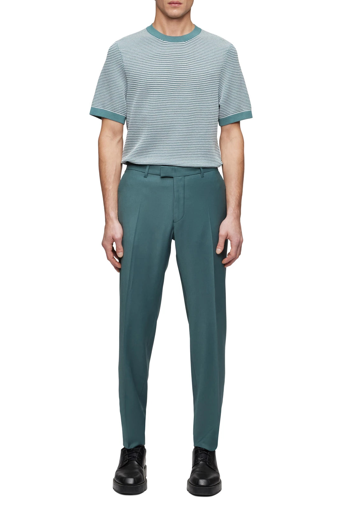 53% polyester 43% wool 4% elastane