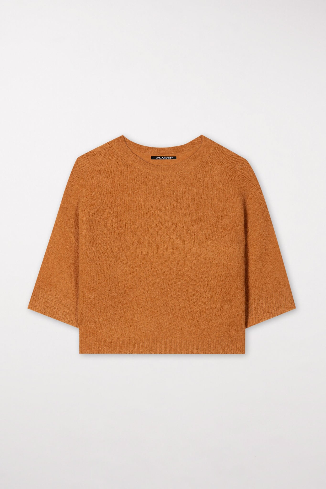 Pullover aus hochwertigem, italienischem Alpaka-Mix mit besonders weichem Griff und Rundhalsausschnitt. Die verkürzte Passform wird durch die herabgesetzten Schulternähte und die halblangen Ärmel komplementiert.