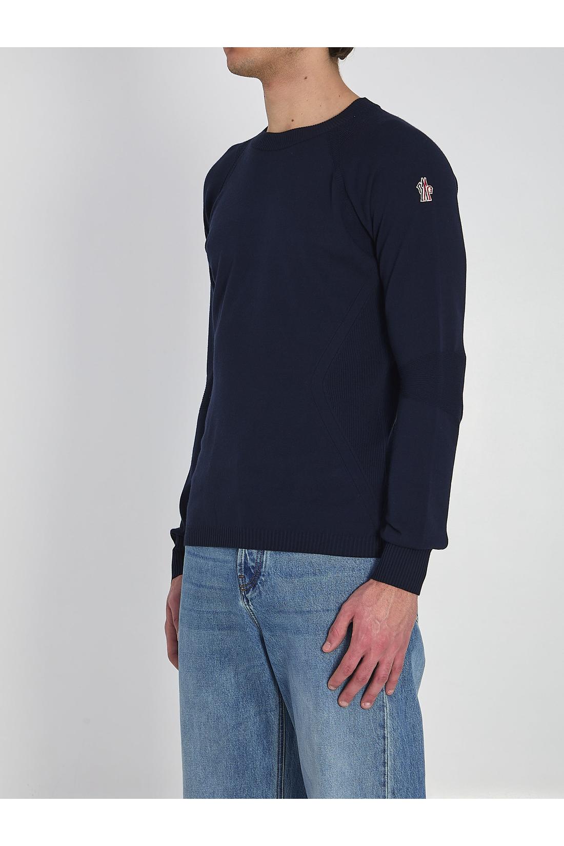 Sweater made from an elasticized viscose blend in dark blue. Features a Linz stitch pattern with ribbed trims, a round neckline, long sleeves, an iconic logo patch on the sleeve, and ribbed cuffs and hem. Regular fit.