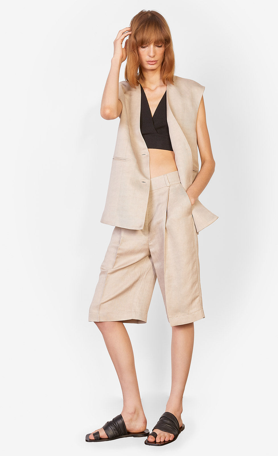Diese Shorts wurde in Bermuda-Länge aus einer fein strukturierten Ware mit weiterem Beinverlauf designt.