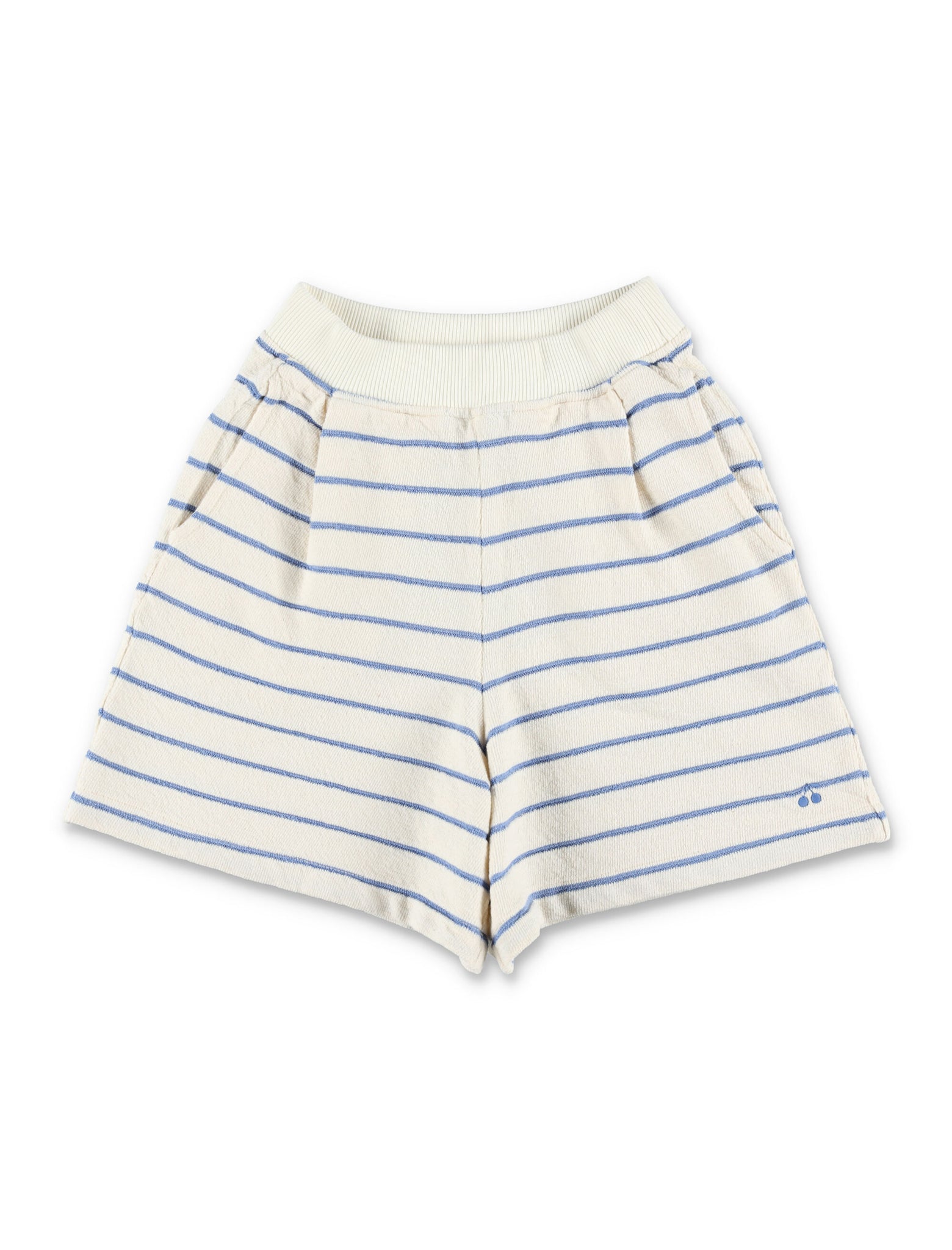 Elevate her wardrobe with these stylish Ivory Sky Cornelia shorts by Bonpoint. Crafted from a comfy cotton blend, they feature a ribbed waistband, side pockets, and playful cherry embroidery, making them perfect for any sunny day adventure.