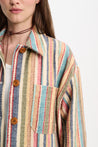 Extra Stripes = extra Attention: Die Jacke aus Baumwolle ist mit bunten Streifen bedruckt. Das Finish erzeugt einen handgemalten Charakter. Die Jacke sitzt oversized und hat destroyed Details.