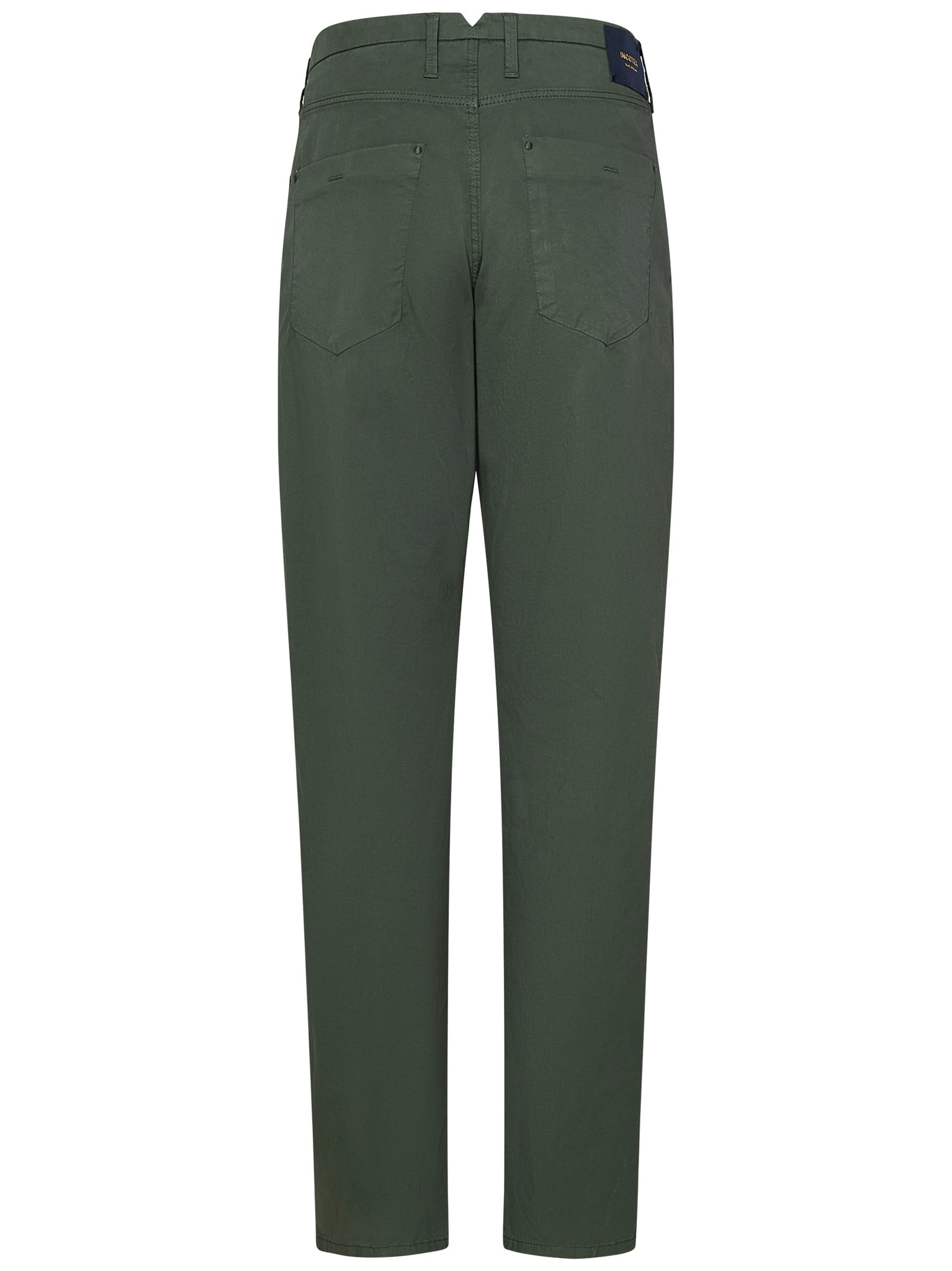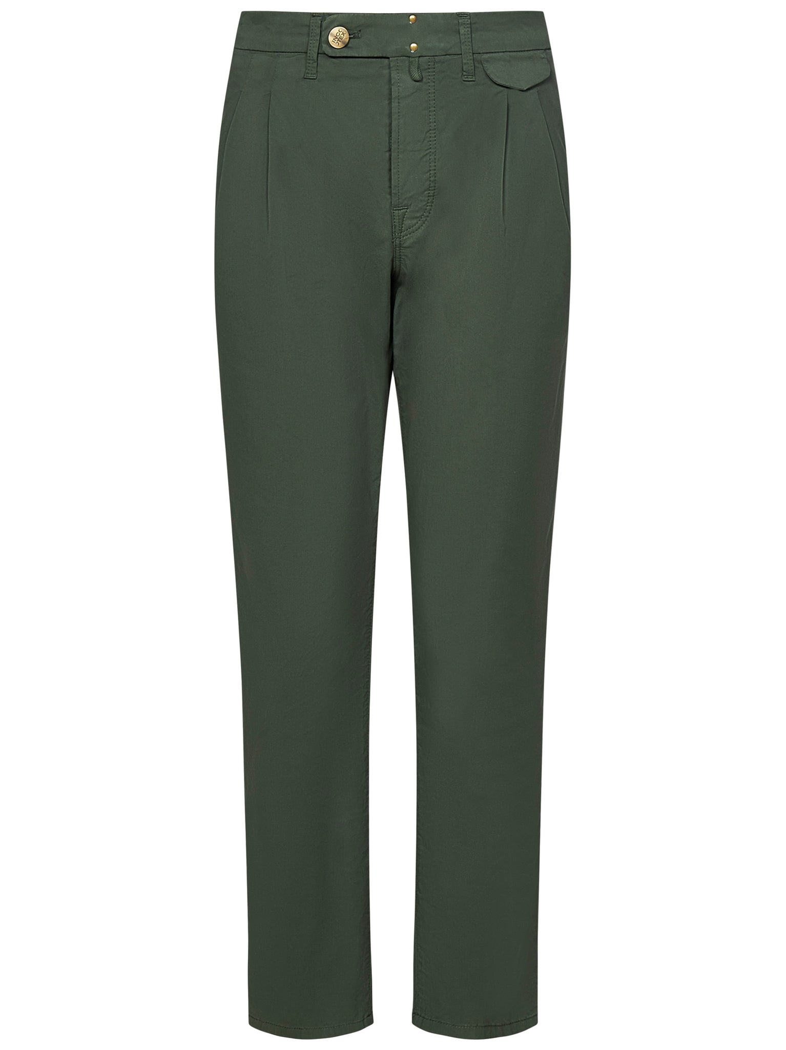 Tapered leg trousers in green stretch cotton with double pleats.