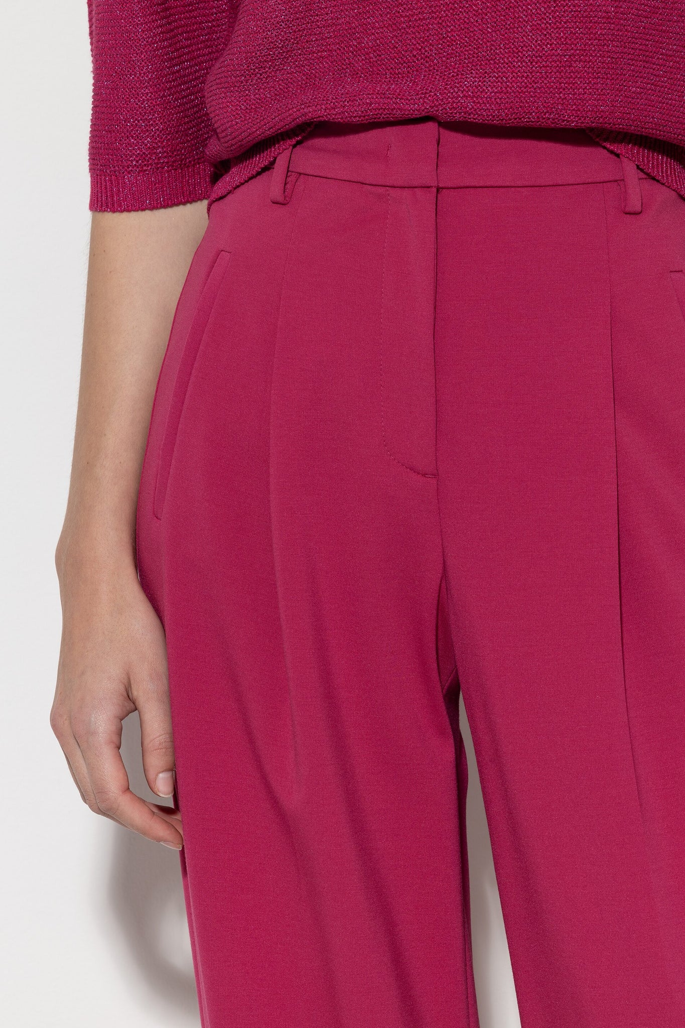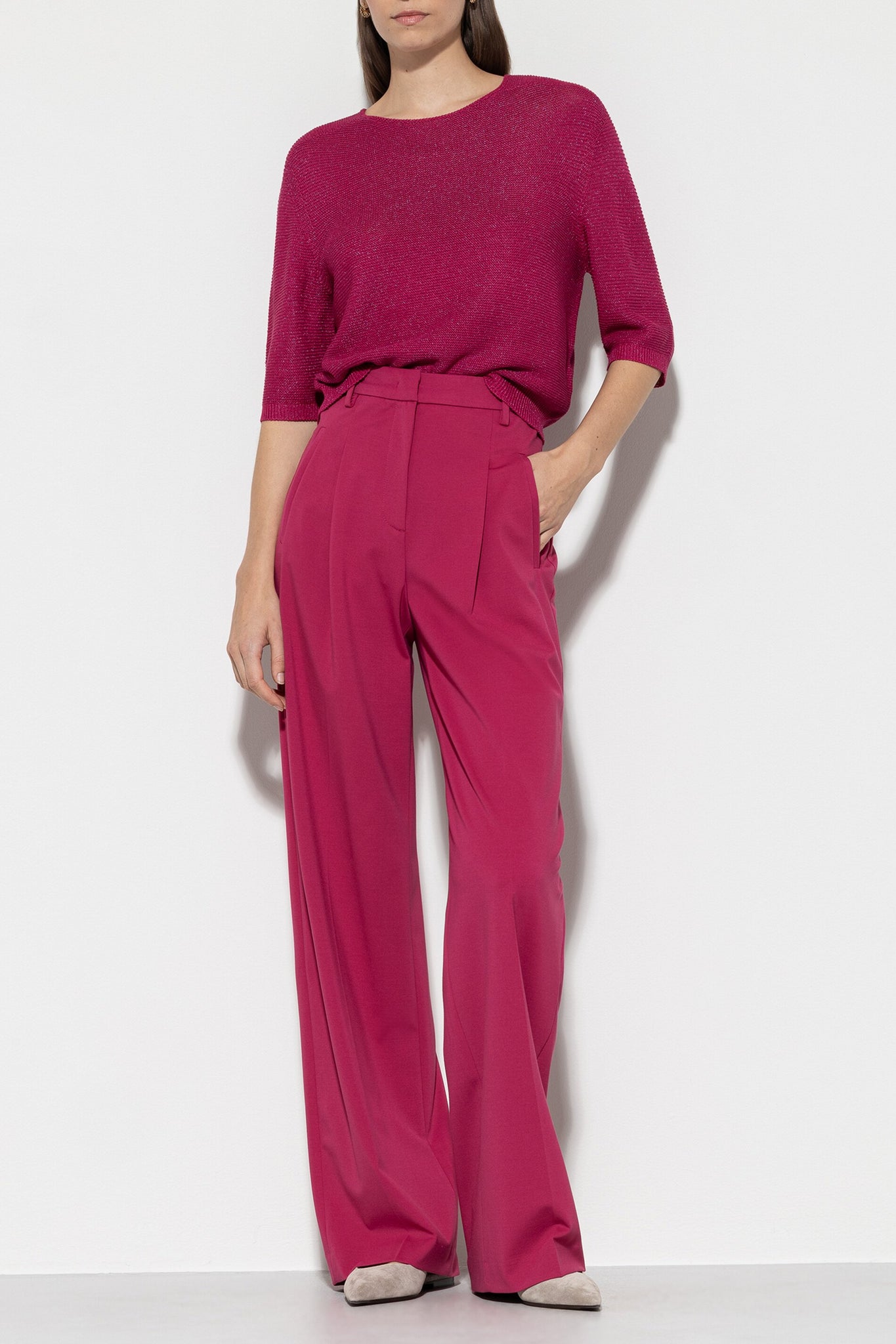 Wideleg-Pants aus weich fließendem Punto-Milano im klassischen Look mit Bundfalte. Auf der Vorderseite befinden sich zwei angedeutete Seitentaschen und die Rückseite zieren zwei angedeutete Pattentaschen.