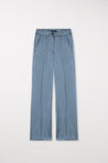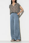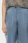 Weit geschnittene Hose aus glänzender Techno-Seide mit leichtem Crinkle-Effekt. Die Hose verfügt über einen teilelastischen Bund mit Bundfalten, seitliche Eingrifftaschen sowie angedeutete Gesäßtaschen mit Patte.